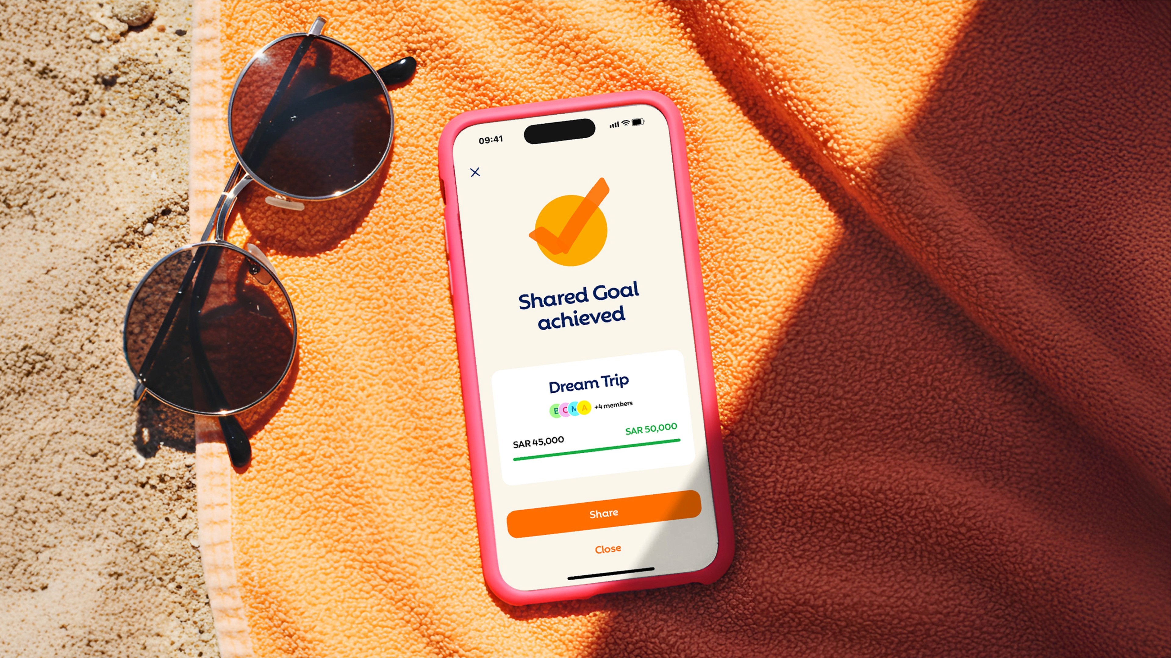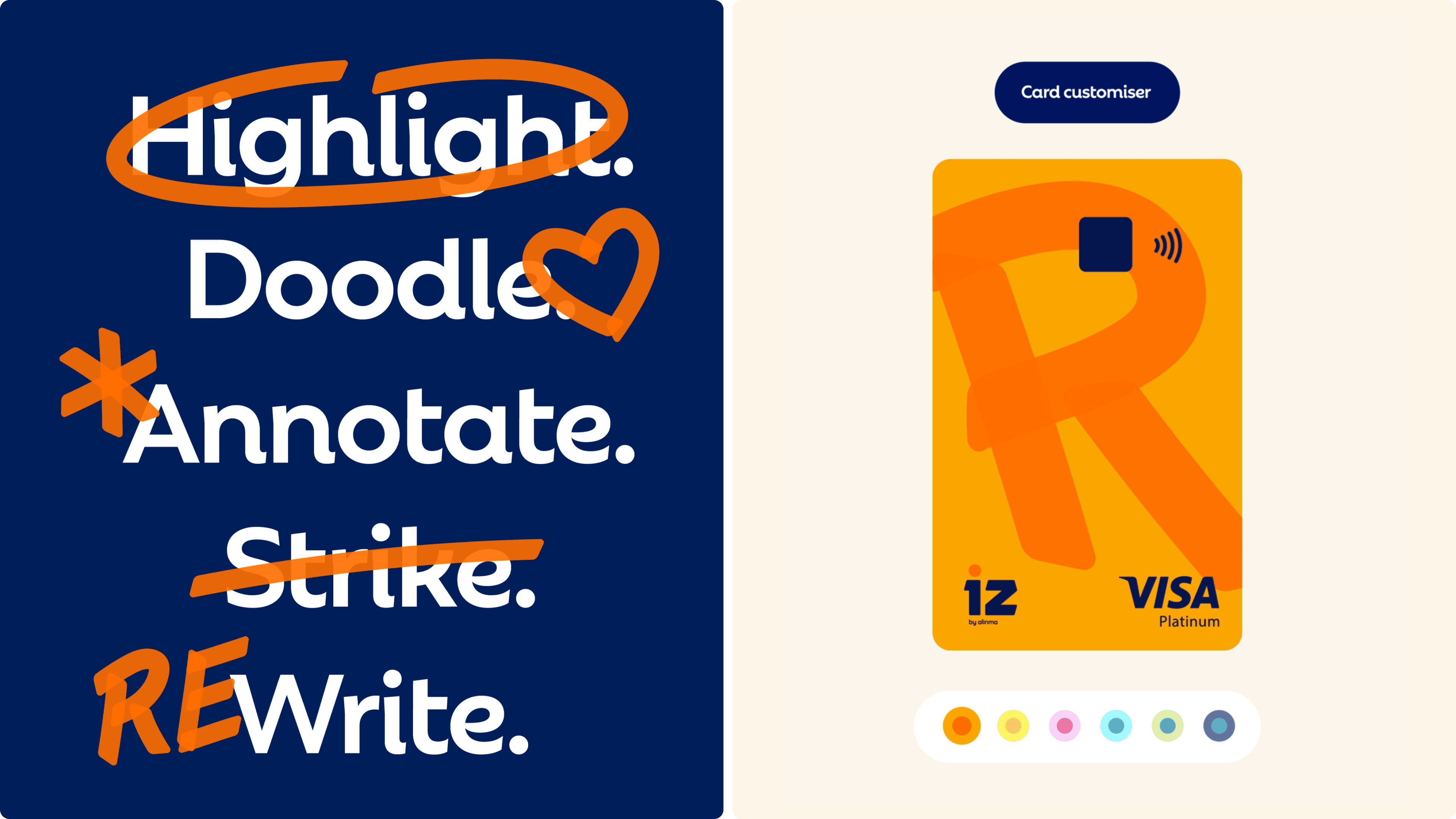 We wanted to create a visual identity that cuts through the cliché in the traditional banking sector. Bright colours, bold imagery, and expressive markings reflect youthful defiance, while a friendly and enthusiastic tone of voice ensures the brand feels approachable and relatable. The brand was designed to live on its own while being lightly endorsed by the parent brand, Alinma, to assure users and create trust. The app addresses the changing needs of the audience, with financial goalsetting, shareable content, and gamified features to bring playfulness back into banking.